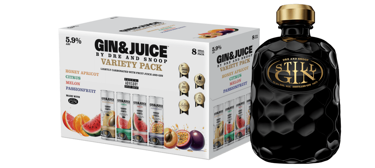 Gin & Juice By Dre and Snoop is the innovative, award-winning ready-to-drink cocktail representing the highly-anticipated first release from Dr. Dre and Snoop Dogg’s new premium spirits company. Taking its concept from Snoop Dogg’s timeless, Dr. Dre-produced iconic 1994 hit “Gin & Juice,” Gin & Juice By Dre and Snoop debuted on shelves in February 2024.
